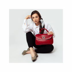 Rankinė iš natūralios itališkos odos, su vienu pagrindiniu skyriumi, užsegamas atvartu su užtrauktuku, per vidurį padalintas į kelis mažesnius skyrelius. Rankinė su rankena, o komplekte yra ir nuimamas dirželis. Rankinės apačioje yra metalinės kojelės, apsaugančios nuo dilimo.