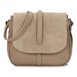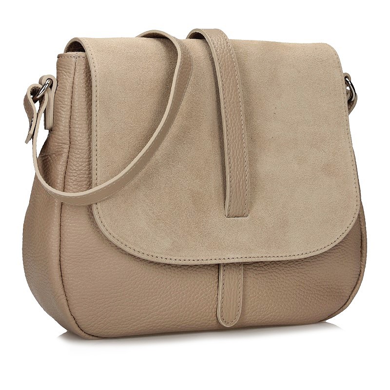 Rankinė su reguliuojamu dirželiu. Akcentas, kad atvartas pagamintas iš zomšinės odos.