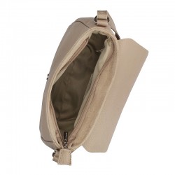 Elegantiškas rankinė, pagamintas iš odos, su vienu pagrindiniu skyriumi, užsegamu atvartu su segtuku ir užtrauktuku, su dviem mažesnėmis kišenėmis viduje.