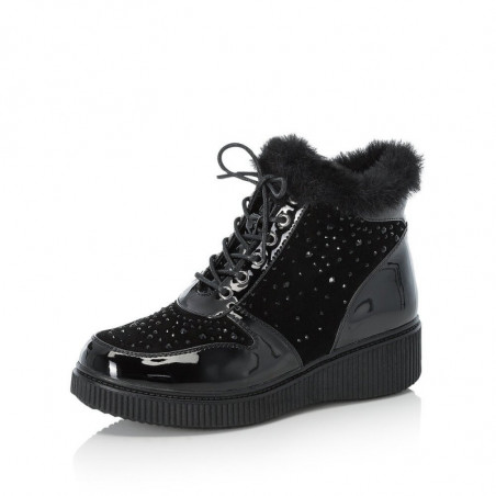Juodos spalvos modernaus stiliaus moteriški aulinukai su dirbtinio kailio pašiltinimu.