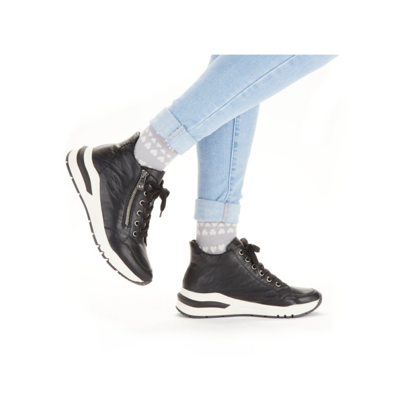 Rieker firmos, juodos spalvos, moteriški sportiniai aulinukai.
