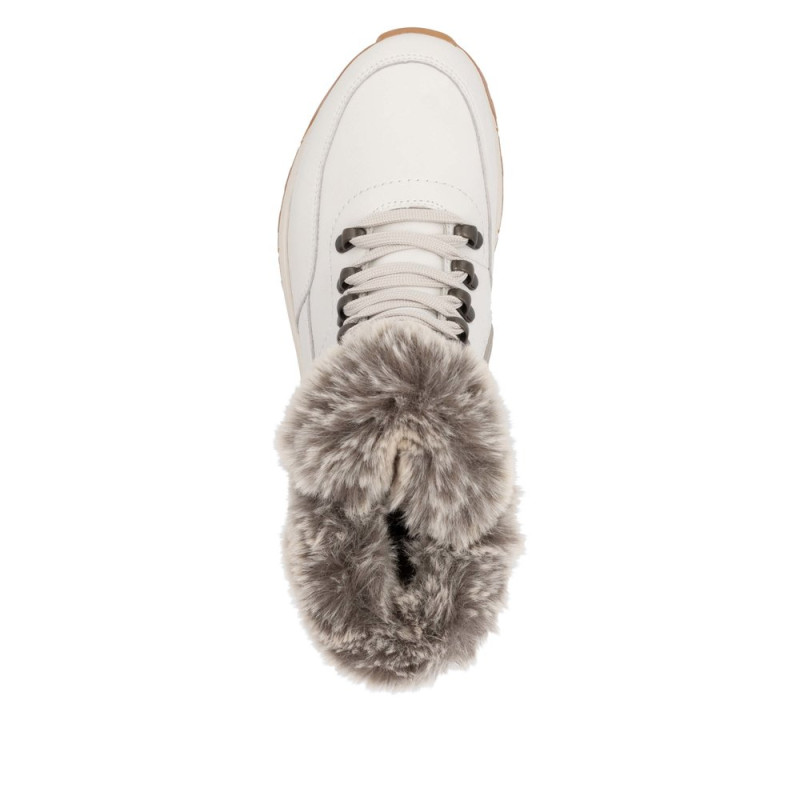 Baltos spalvos, modernaus stiliaus moteriški aulinukai su vilnos pašiltinimu viduje.