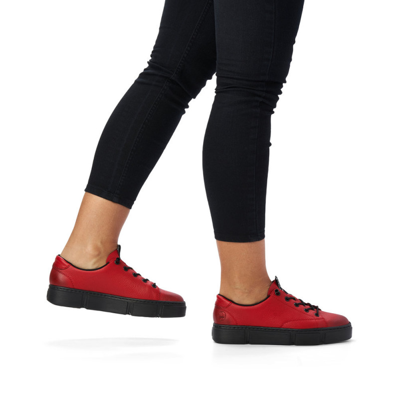 Rieker firmos, raudonos spalvos, moteriški sportiniai bateliai.