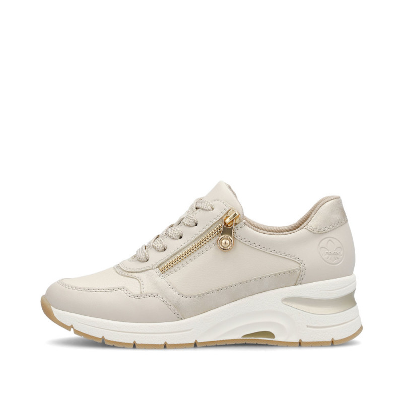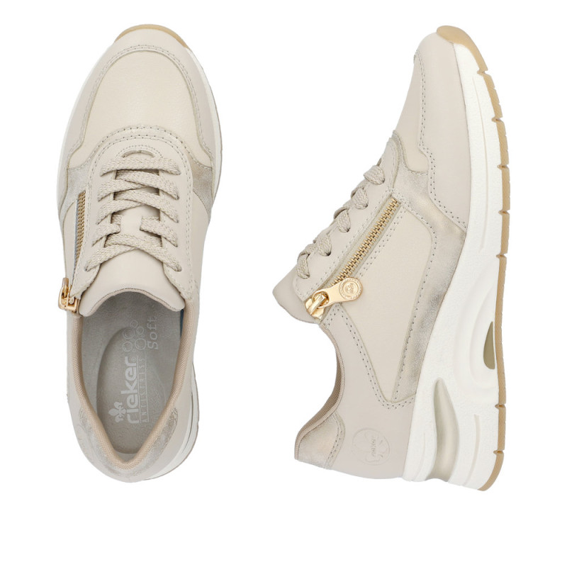 Rieker firmos, smėlio spalvos, moteriški sportiniai bateliai su 5,4 cm padu.