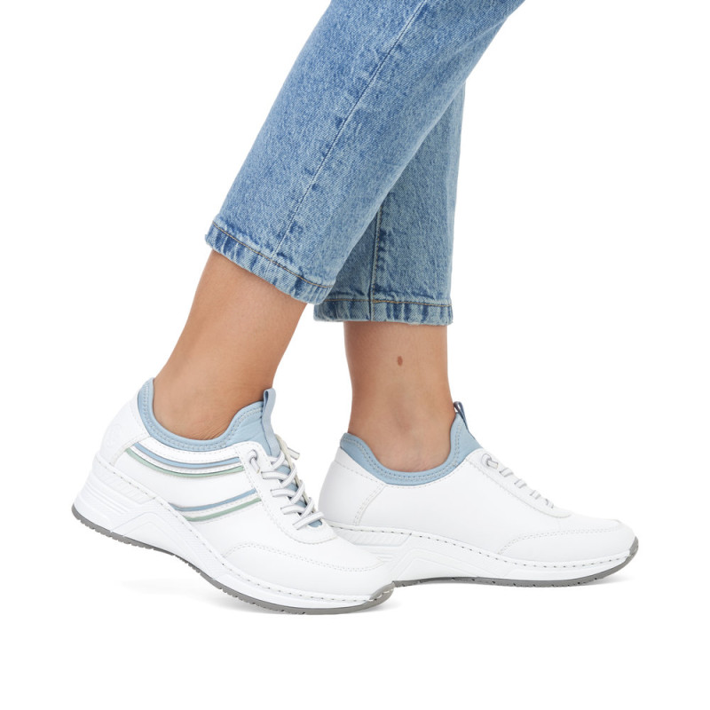 Rieker firmos, baltos spalvos, moteriški sportiniai bateliai su 4,9 cm padu.