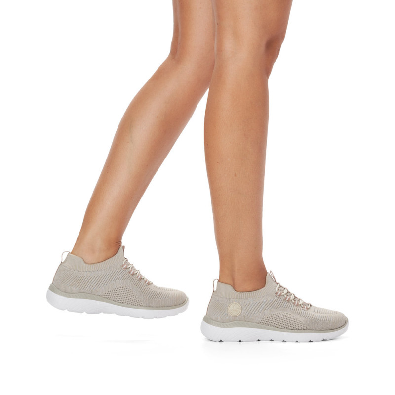 Rieker firmos, smėlio spalvos, moteriški sportiniai bateliai.