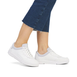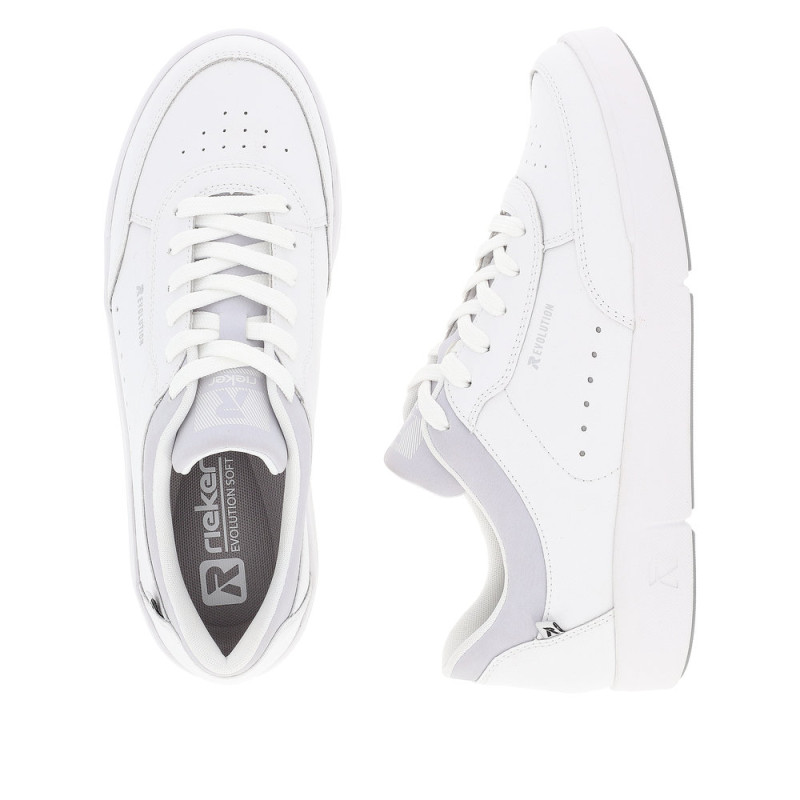 Baltos spalvos, moteriški sportiniai bateliai su 3,5 cm padu.
