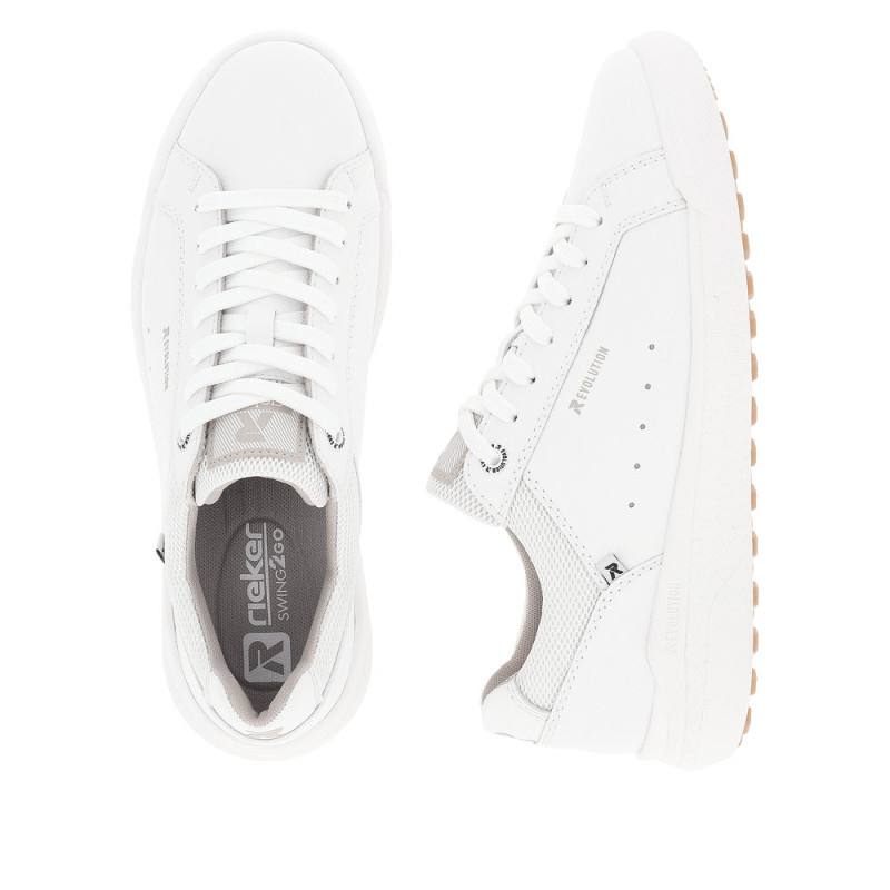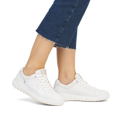 Baltos spalvos, moteriški sportiniai bateliai su 2,8 cm padu.
