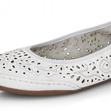 Modernaus dizaino, baltos spalvos, moteriškos odinės basutės.