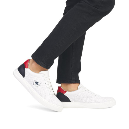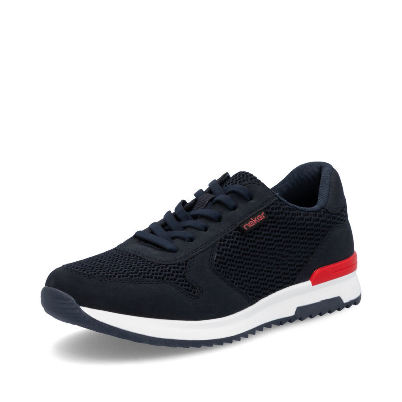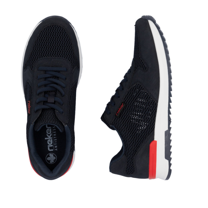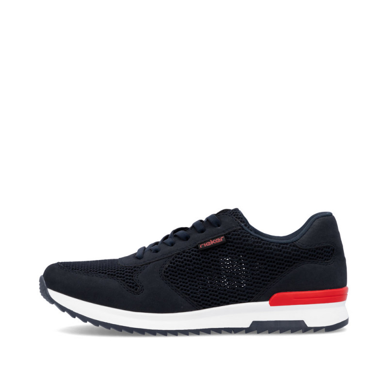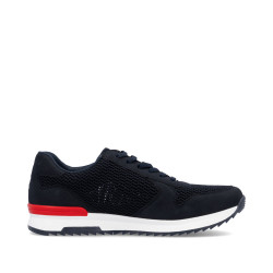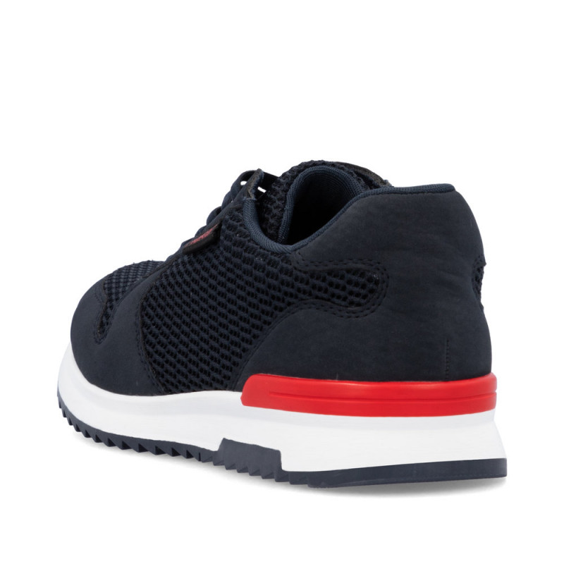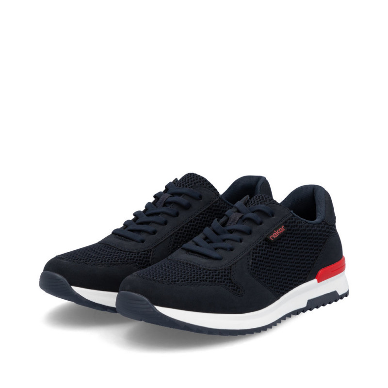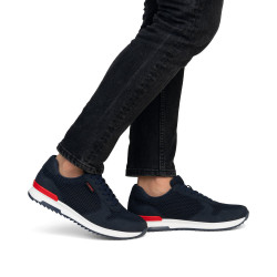 Mėlynos spalvos, tekstiliniai vyriški sportiniai bateliai.