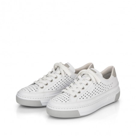 Baltos spalvos Rieker vyriški sportiniai odiniai bateliai.
