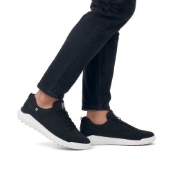 Juodos spalvos, tekstiliniai vyriški sportiniai bateliai.