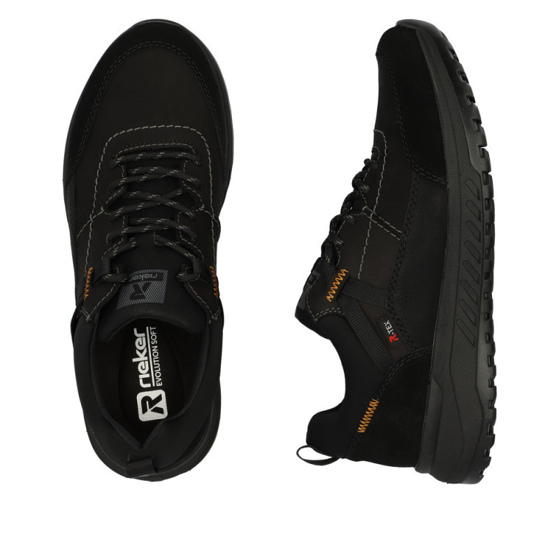 Juodos spalvos, odiniai Rieker vyriški sportiniai bateliai.