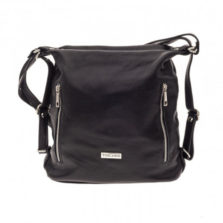 Elegantiško dizaino, natūralios odos kuprinė su dviem užtraukiamomis kišenėlėmis priekyje ir viena gale.